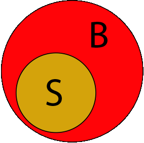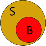 In Bezug auf die Menge aller scheissenden Hunde (S) sind die beissenden Hunde (B) eine Teilmenge. B ist in S enthalten! Alle Hunde, die beissen, scheissen. Aber nicht alle Hunde, die scheissen, beissen. Für Radfahrer ist das eine Erkenntnis, die etwas Hoffnung rechtfertigt: Je kleiner die Teilmenge B in Bezug zur Gesamtmenge S, desto geringer die Wadenbiss-Wahrscheinlich­keit.